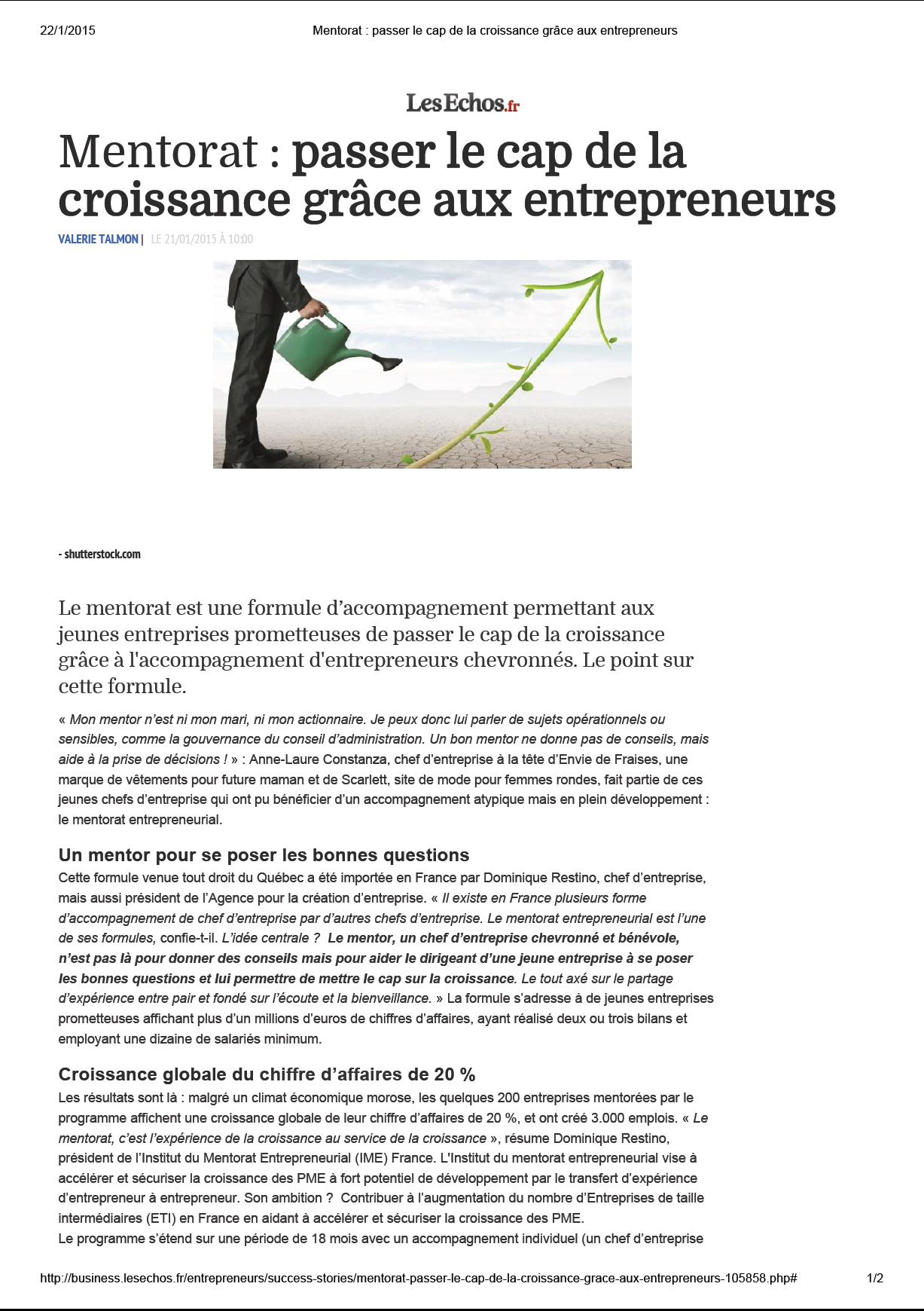 Partager la publication ""Mentorat : passer le cap de la croissance grâce aux entrepreneurs", par Les Echos"